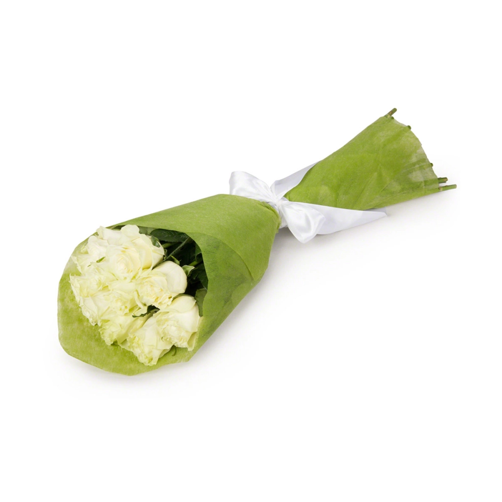 Элегантный букет из белоснежных роз в благородной фетровой упаковке — воплощение чистоты и божественной гармонии.