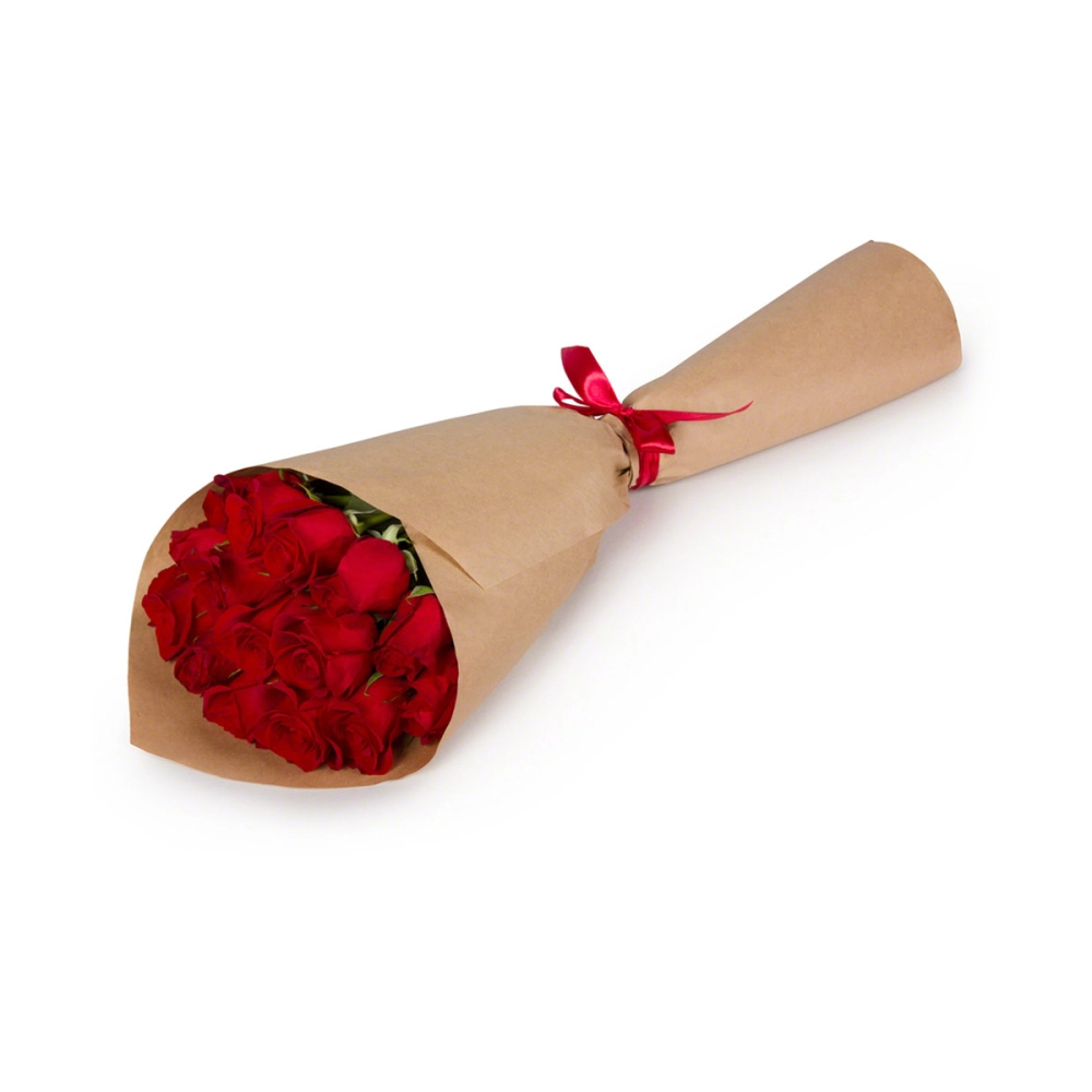 Элегантный букет из красных роз в экологичной крафтовой упаковке — это современное проявление искренних чувств.