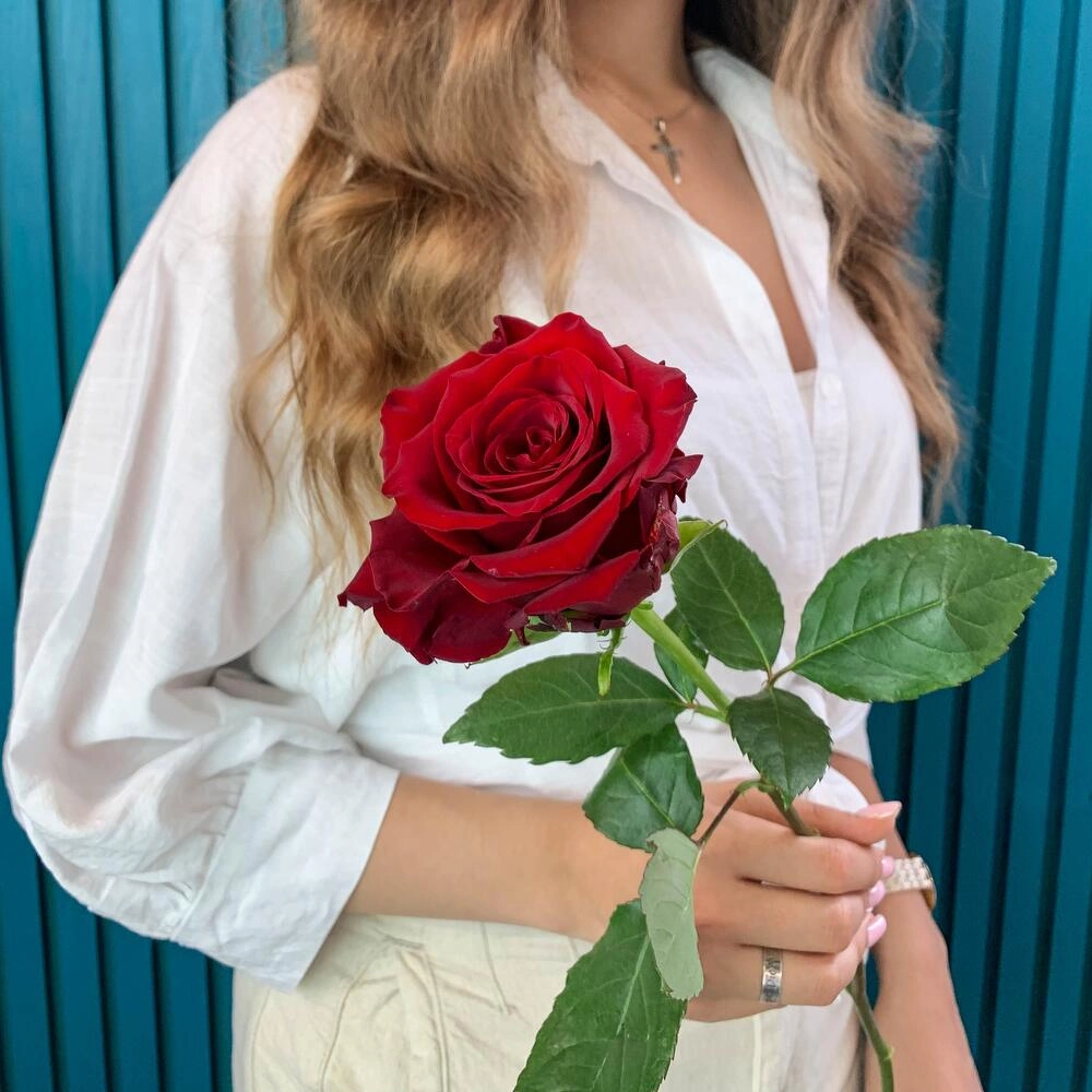 Изысканный комплимент из одной красной эквадорской розы — это элегантный способ выразить симпатию. Бархатистый бутон премиум-сорта на длинном стебле говорит о внимании и хорошем вкусе. Идеально для первого свидания или небольшого приятного сюрприза. Доставка свежих цветов от Афло.