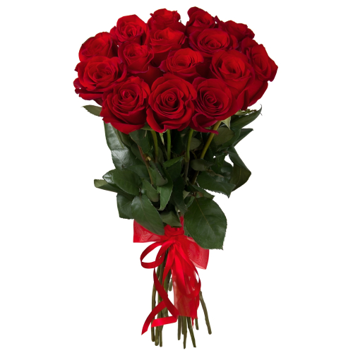 Пышный букет из 15 красных роз — классическое признание в любви.