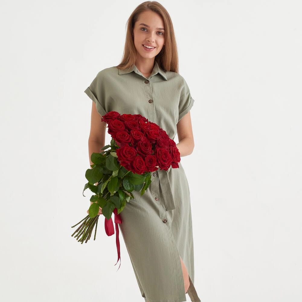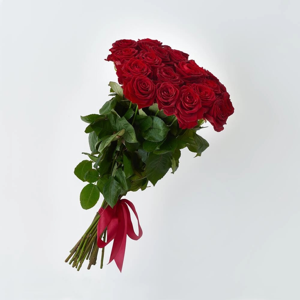 Элегантная композиция из 21 свежей красной розы — классический символ любви и преданности.