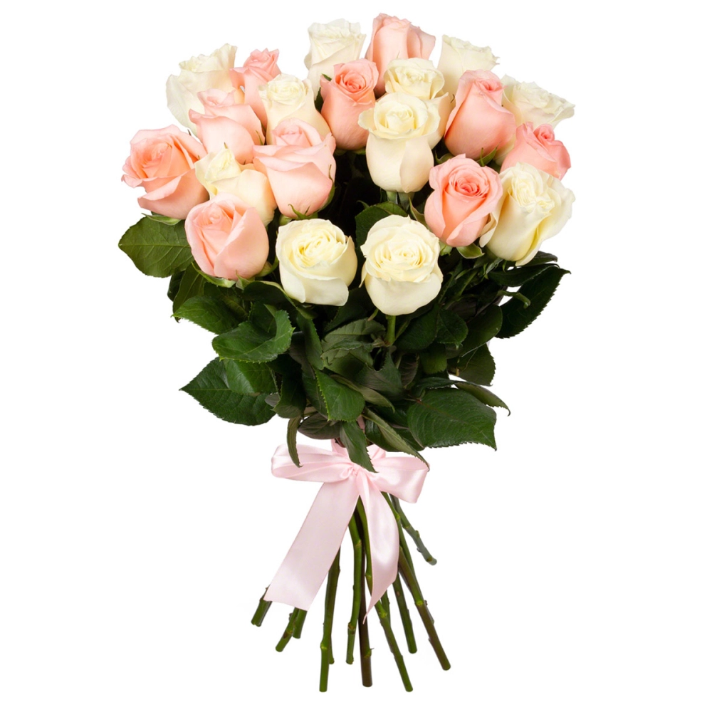 Букет из 21 розовых и белых роз