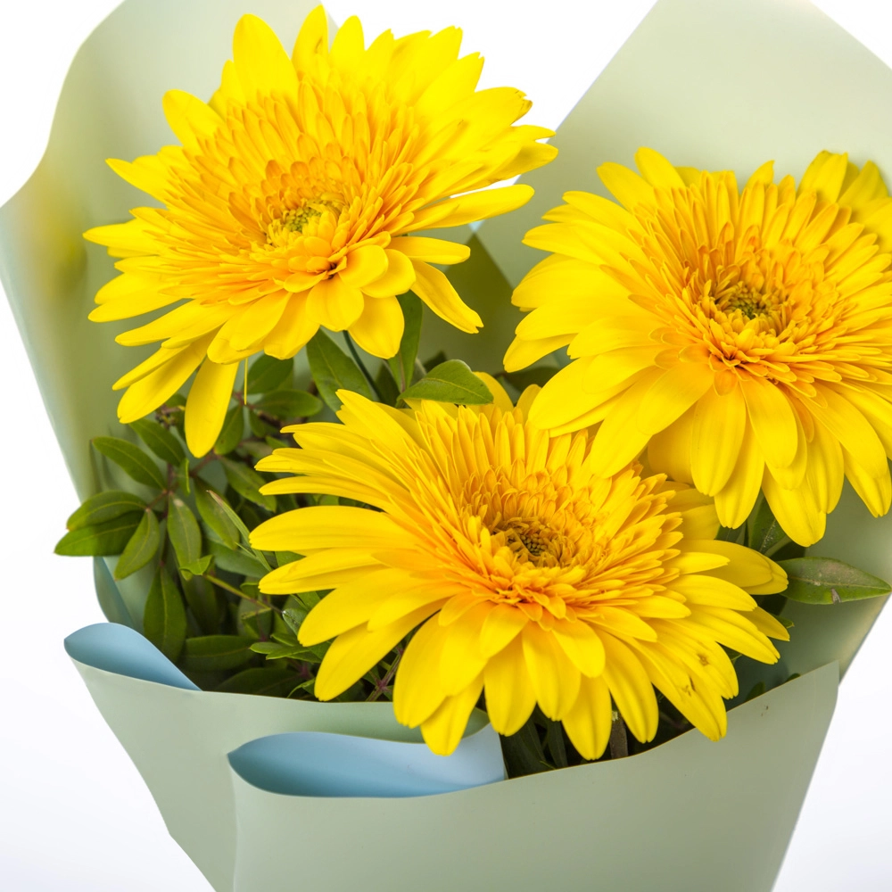 Яркий букет из 3 жёлтых гербер – частичка солнечного света