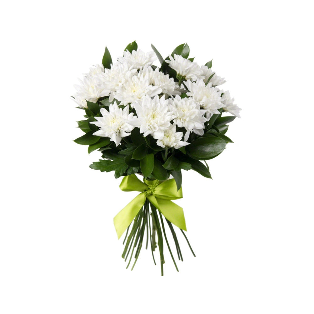 Нежный букет из белоснежных хризантем «Белый ангел» воплощает чистоту и совершенство. Идеально ровные соцветия с плотными лепестками создают образ благородной простоты. Этот элегантный букет станет прекрасным свадебным аксессуаром или изысканным подарком для особого торжества. Хризантемы с доставкой в Климовске.