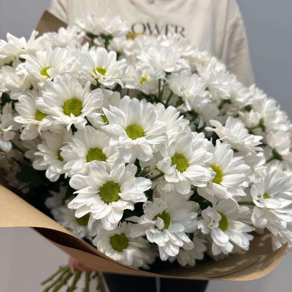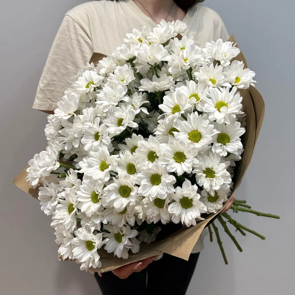 Свежий букет «Летняя свежесть» из белоснежных кустовых хризантем подарит ощущение летнего луга. Эти пышные цветы с нежными лепестками создают атмосферу легкости и чистоты. Идеальный выбор для летнего подарка или украшения интерьера.