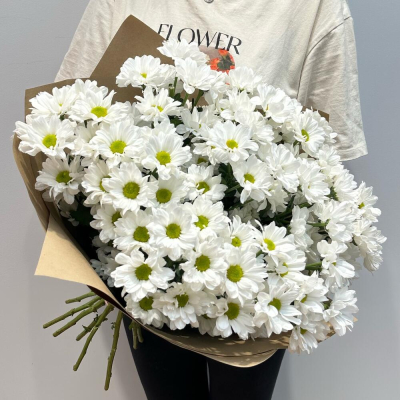 Букет «Летняя свежесть» – дыхание лета в белых хризантемах