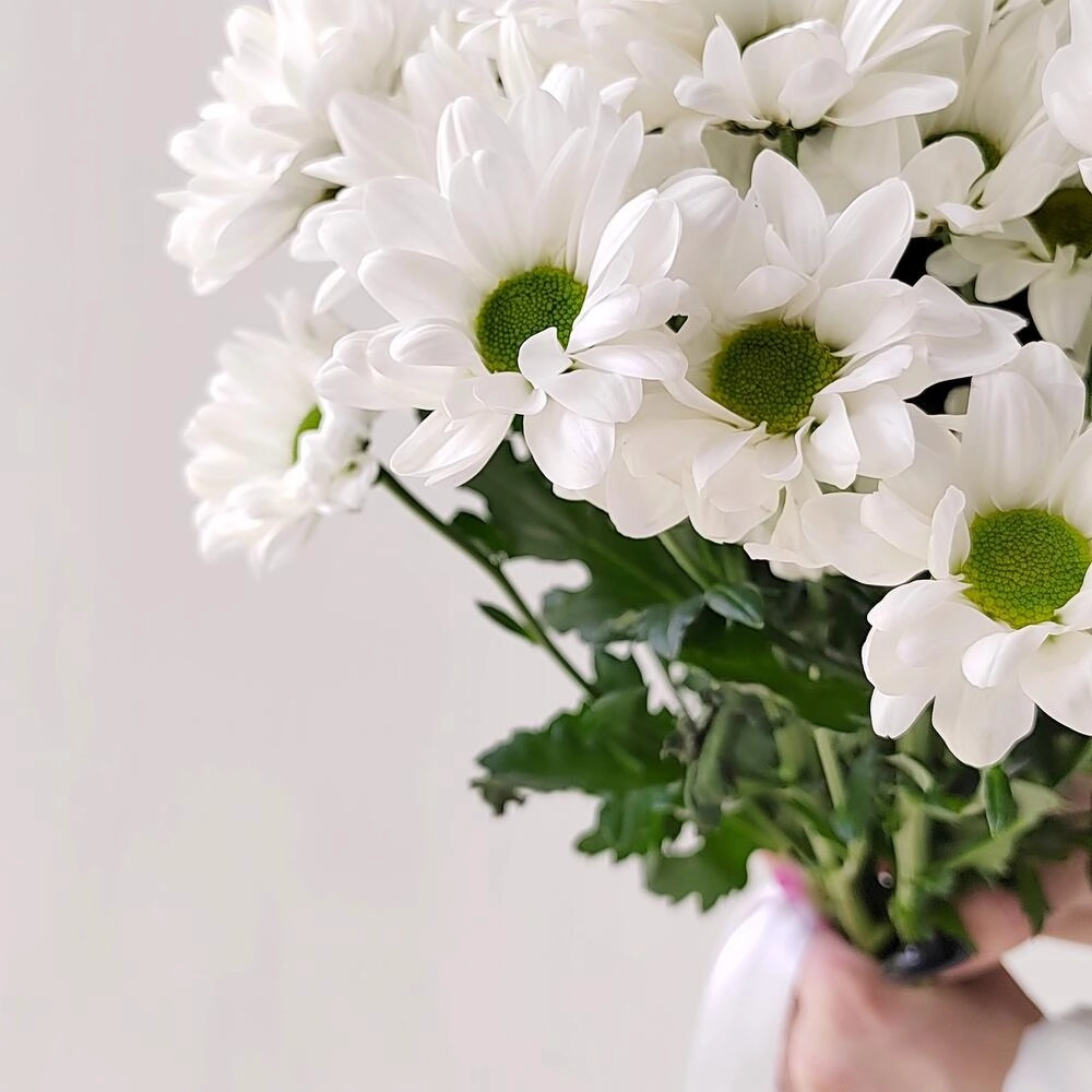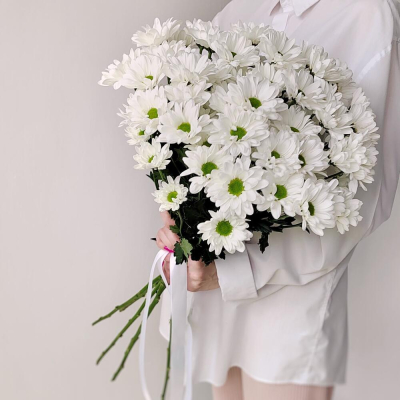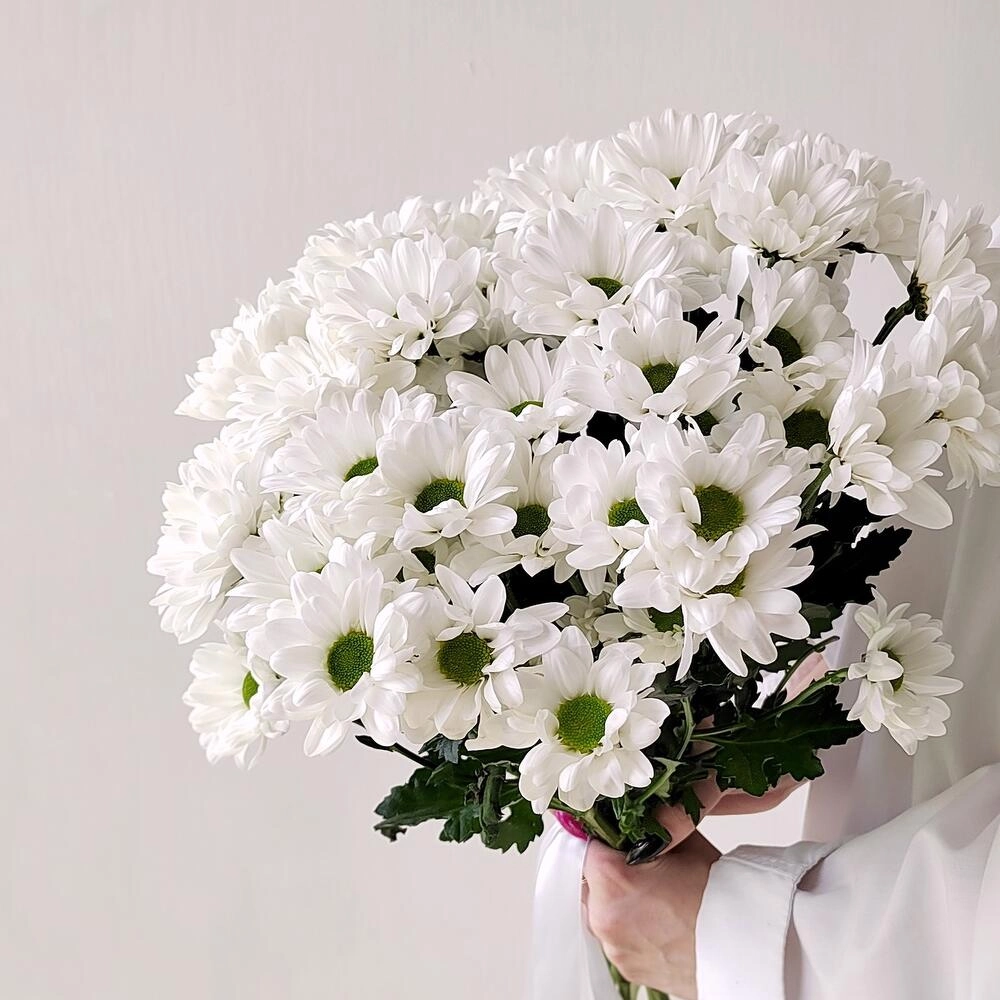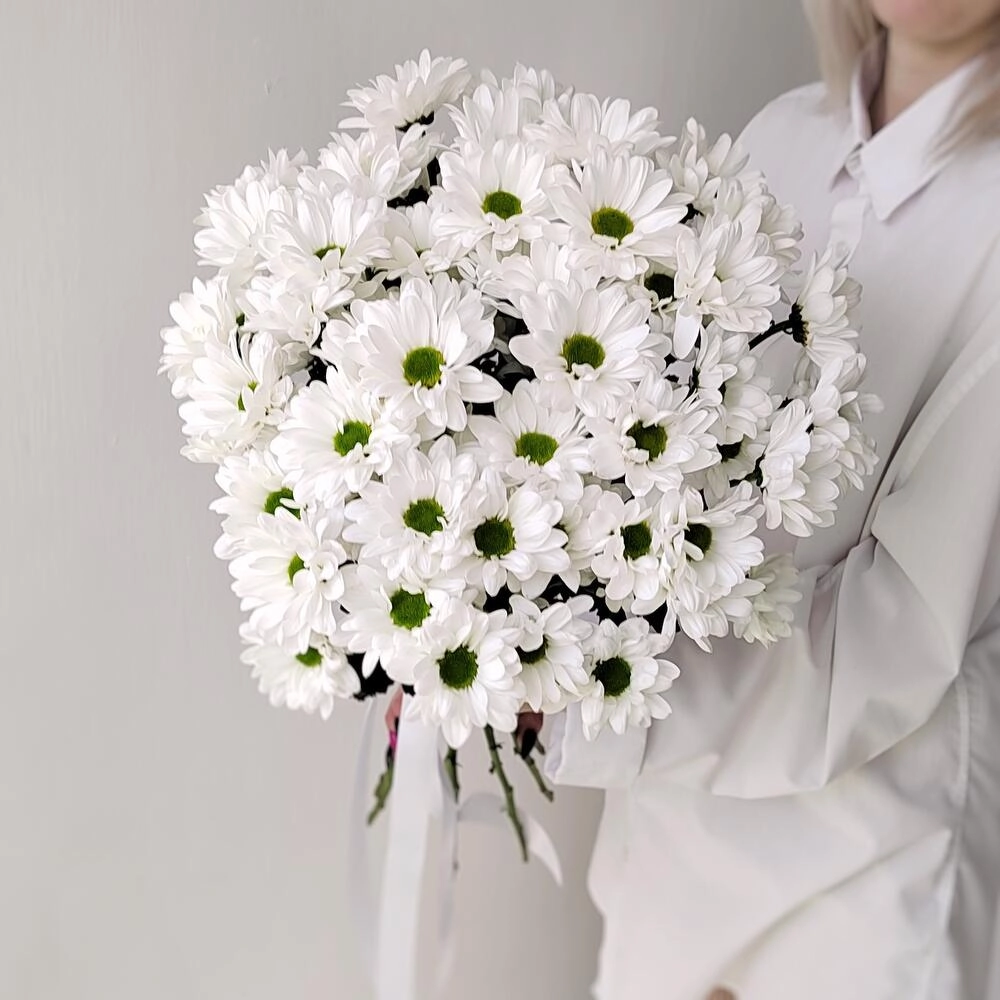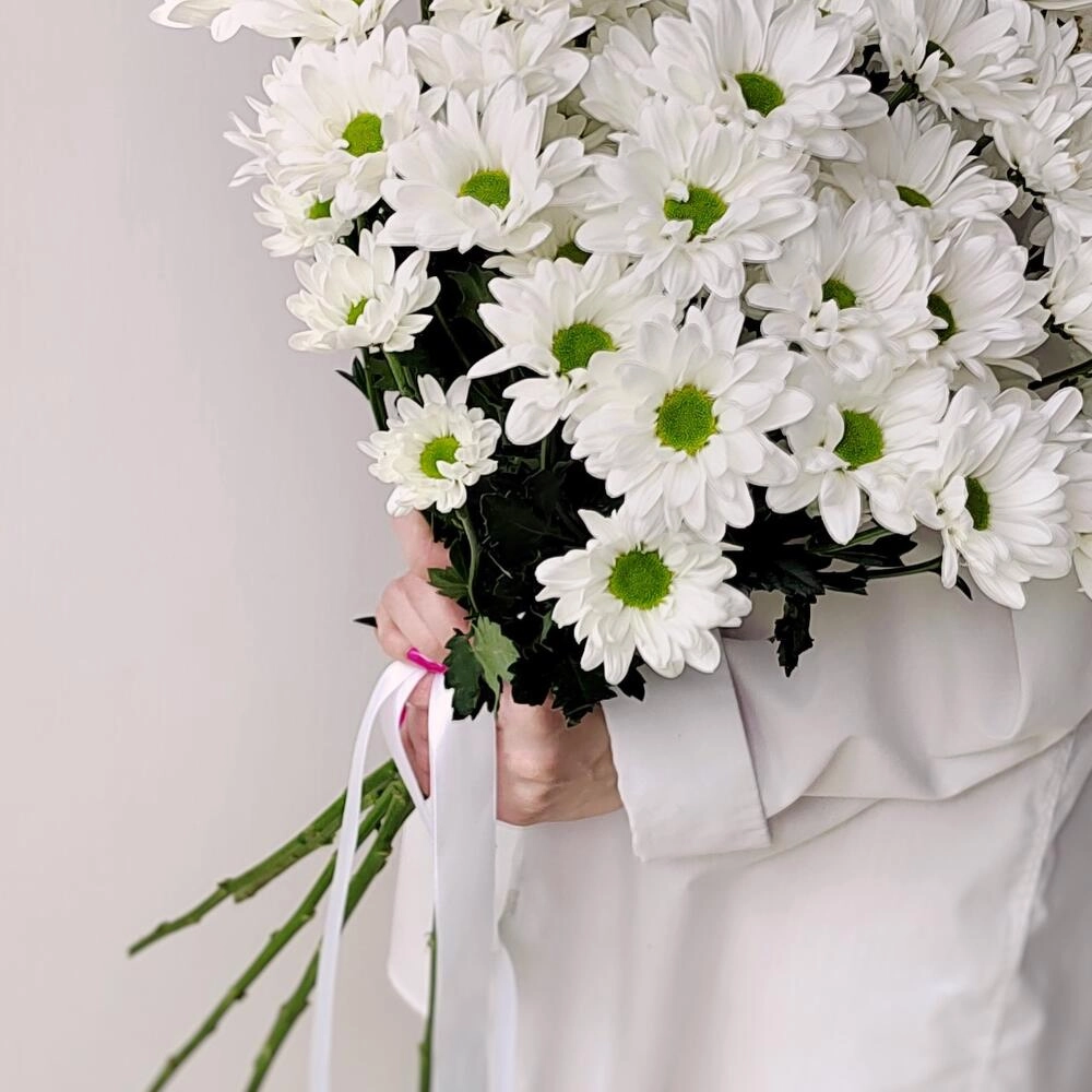 Очаровательный букет «Ромашка» из 9 белых кустовых хризантем напоминает летнее поле. Эти пышные цветы с нежными лепестками создают атмосферу чистоты и уюта. Идеальный выбор для подарка близкому человеку или украшения интерьера. Хризантемы в Климовске.