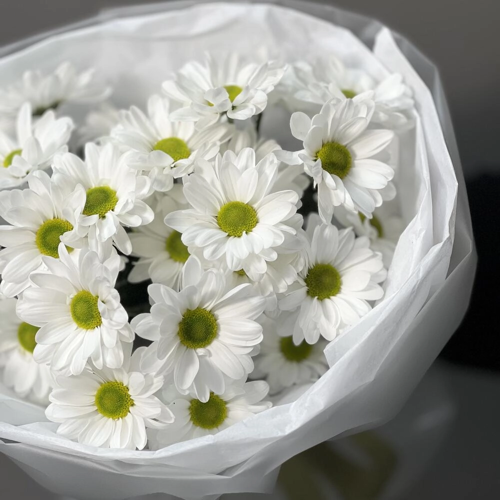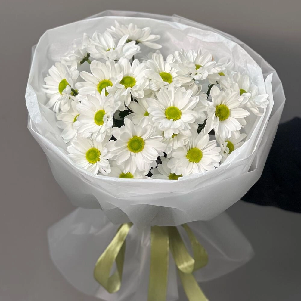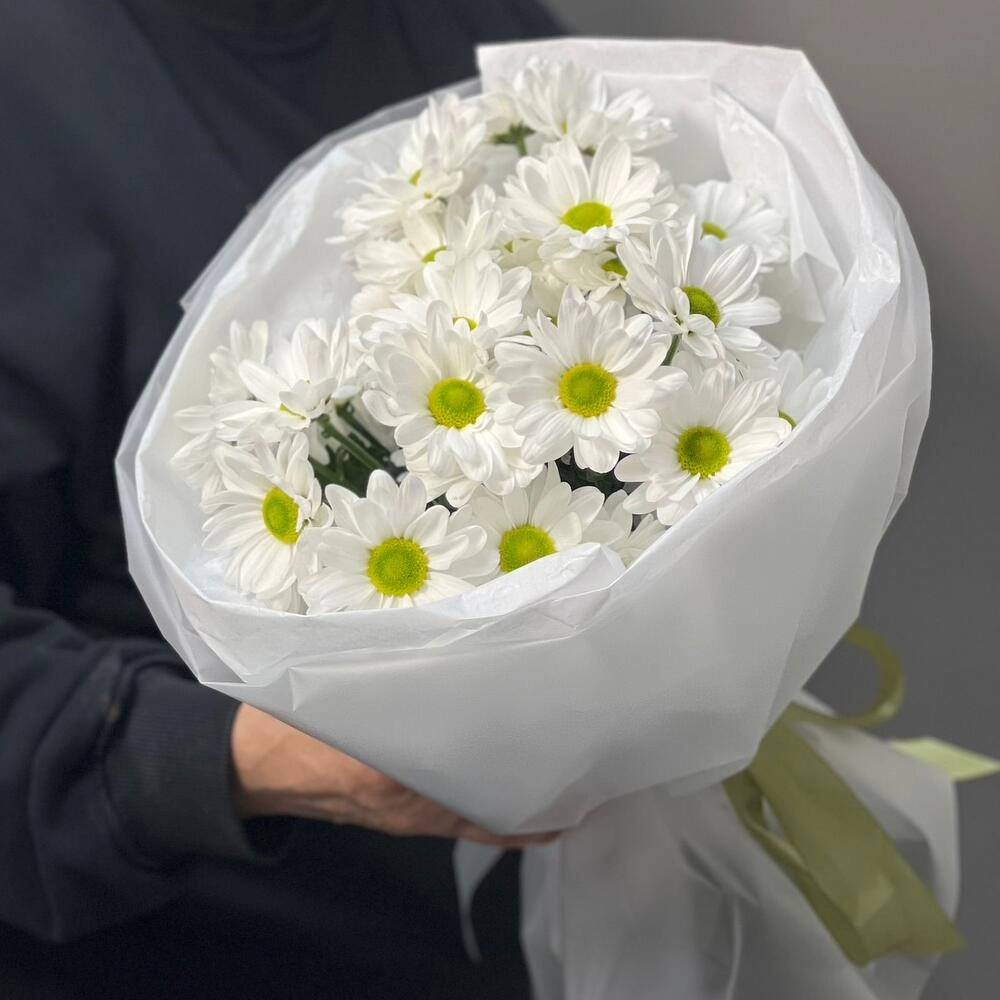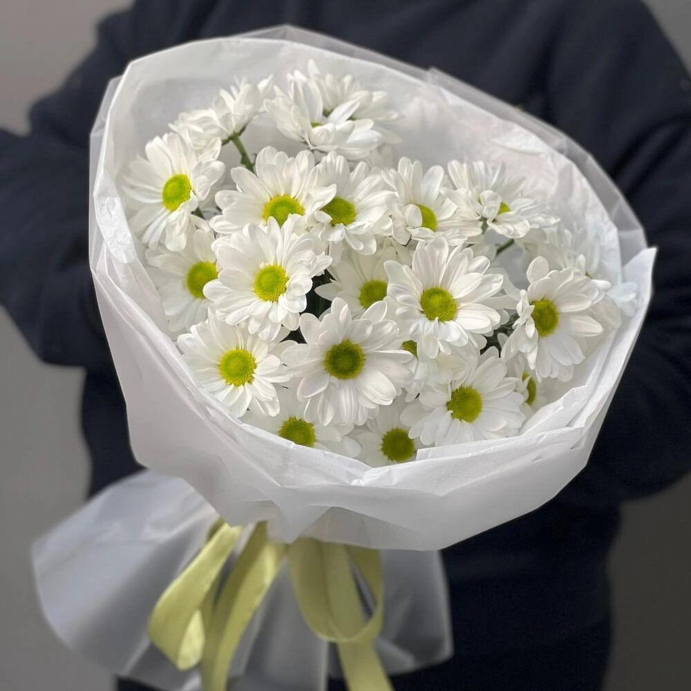 Букет «Ромашковое чудо» – летнее настроение в белых хризантемах