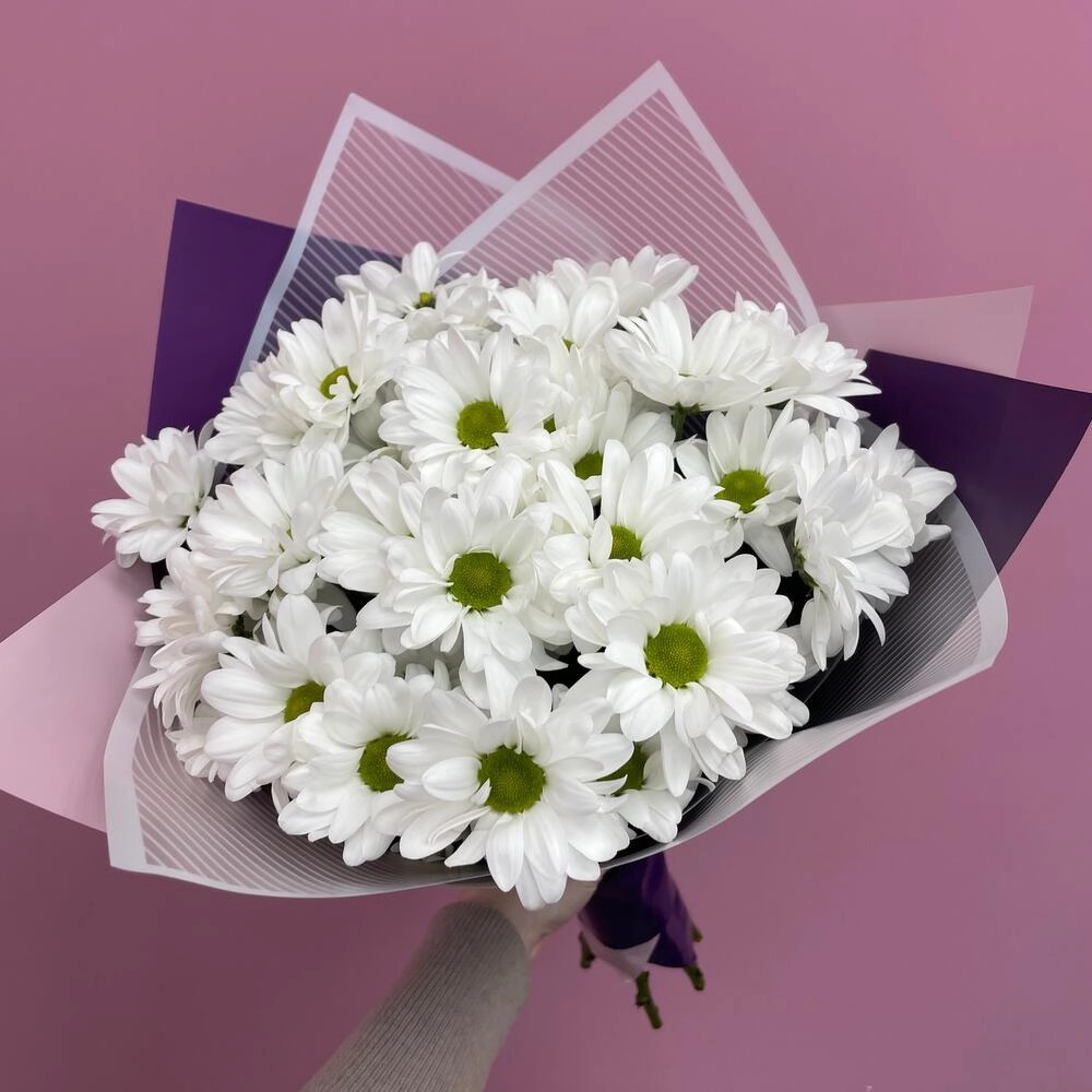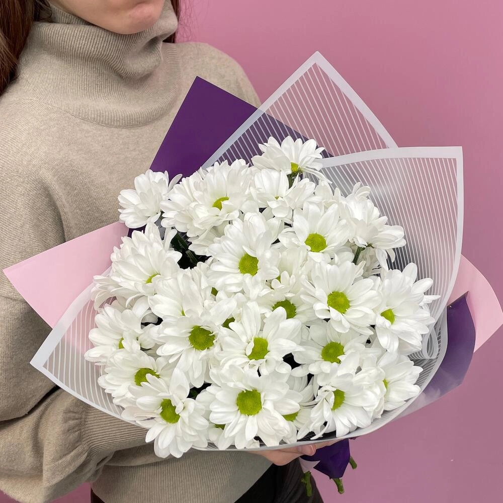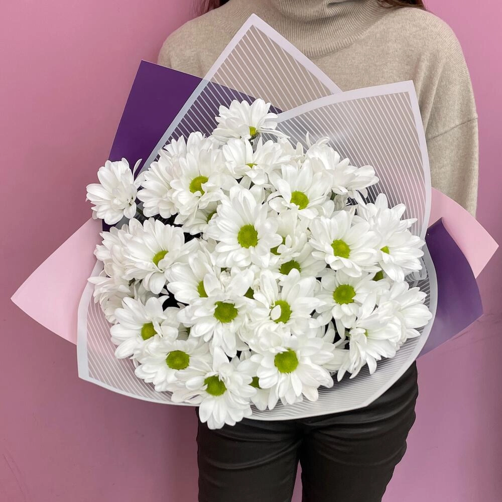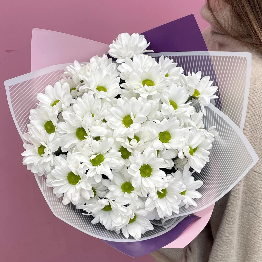 Букет «Весеннее настроение» – свежесть белых хризантем