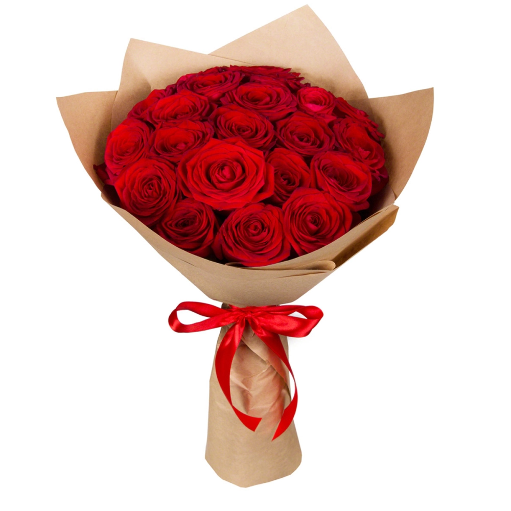 Подарите страсть и нежность с элегантным букетом из красных роз в стильной крафтовой упаковке.